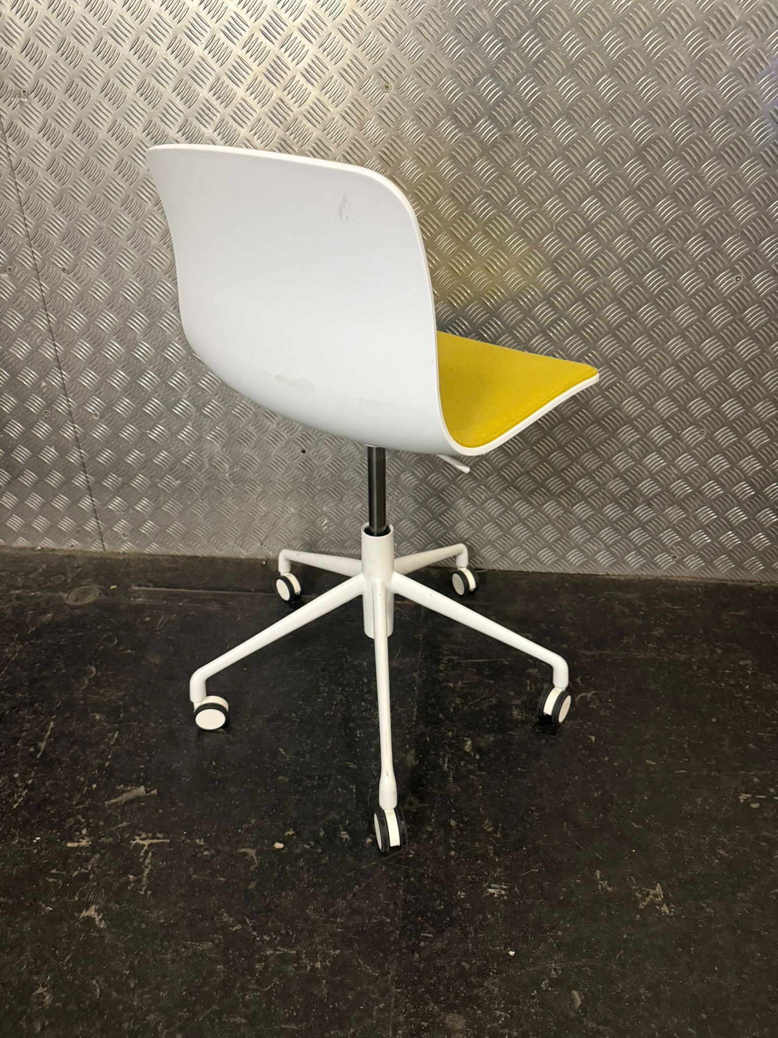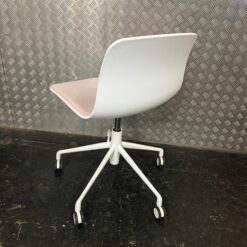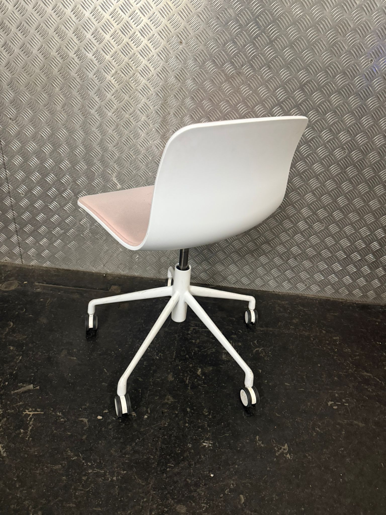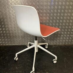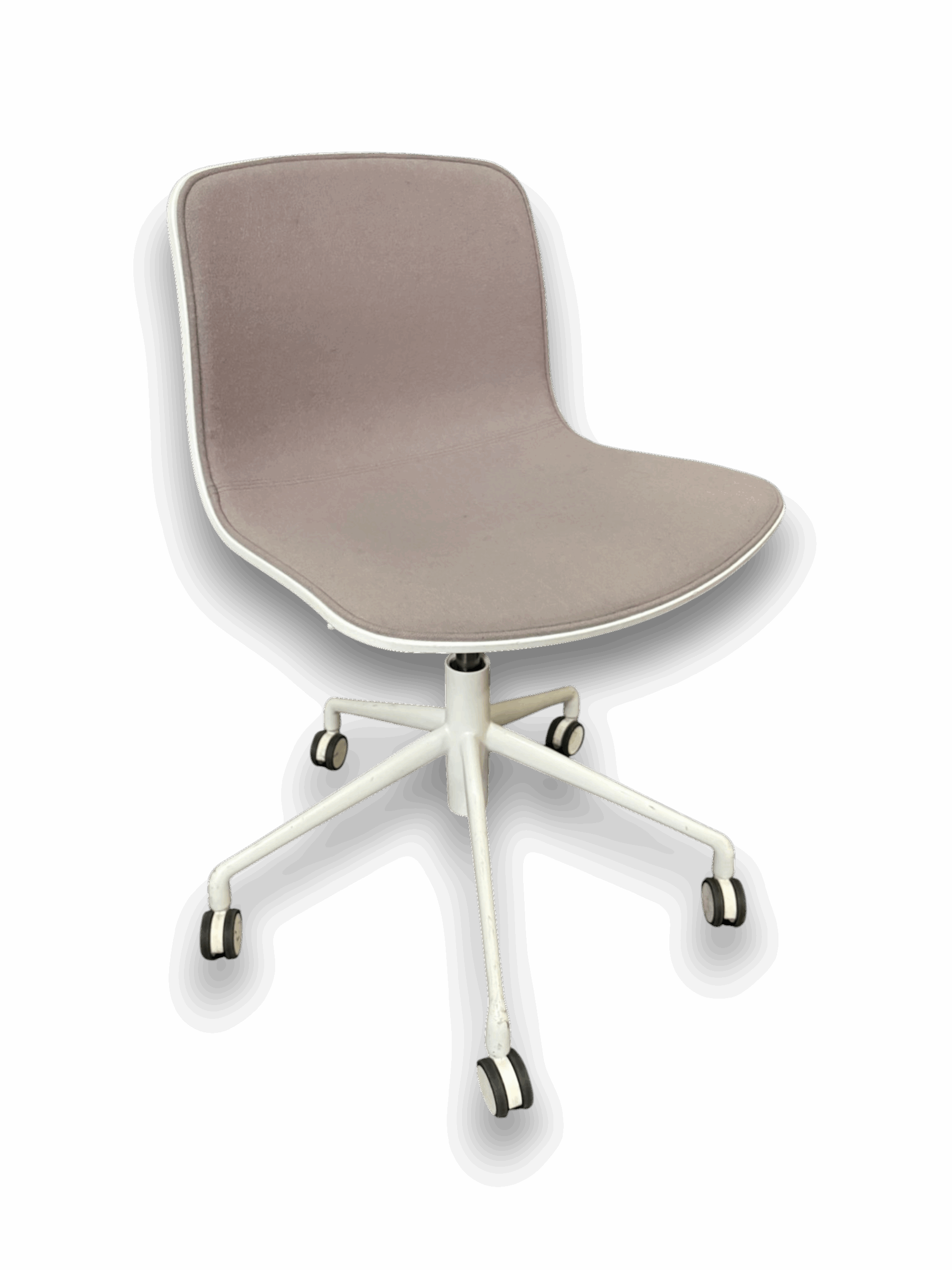 Le revêtement en tissu (disponible en 9 couleurs) permet d’adapter facilement la chaise à votre décoration : ambiance sobre, moderne ou plus chaleureuse. Le tout est monté sur un piètement étoile blanc à 5 branches avec roulettes, pour une stabilité optimale et des déplacements fluides.