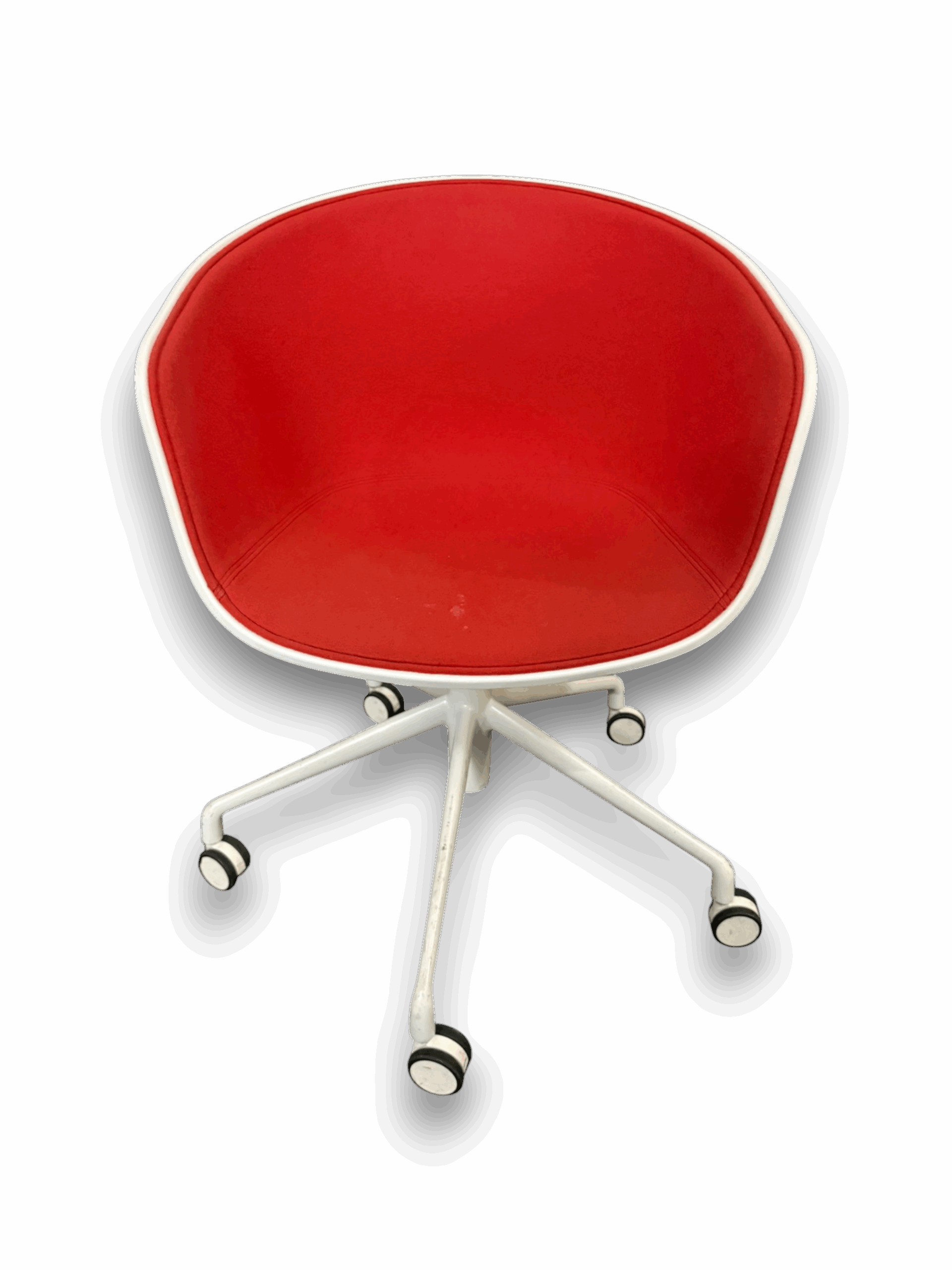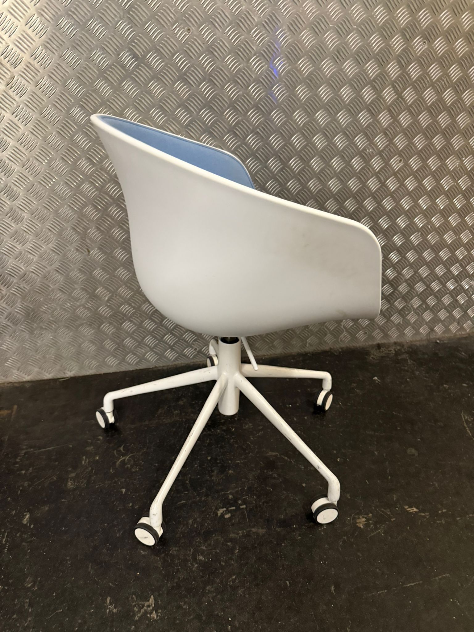 Son piètement étoile blanc avec roulettes assure une mobilité fluide et une stabilité agréable, tout en gardant une ligne légère et soignée.