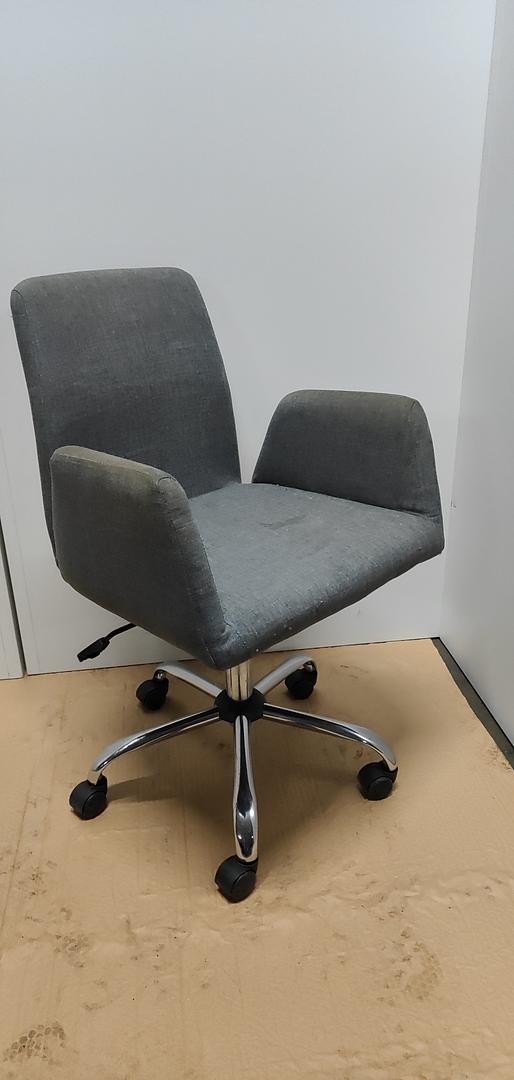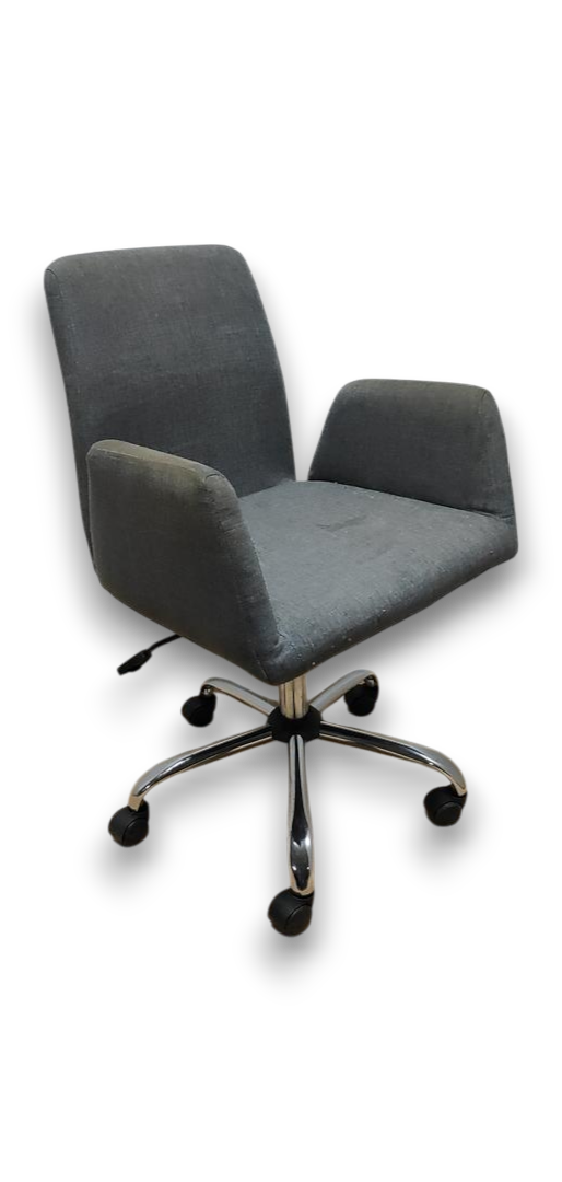 Fauteuil de bureau gris à roulettes, alliant confort, design sobre et praticité. Idéal pour un bureau professionnel, un espace de coworking ou le télétravail.