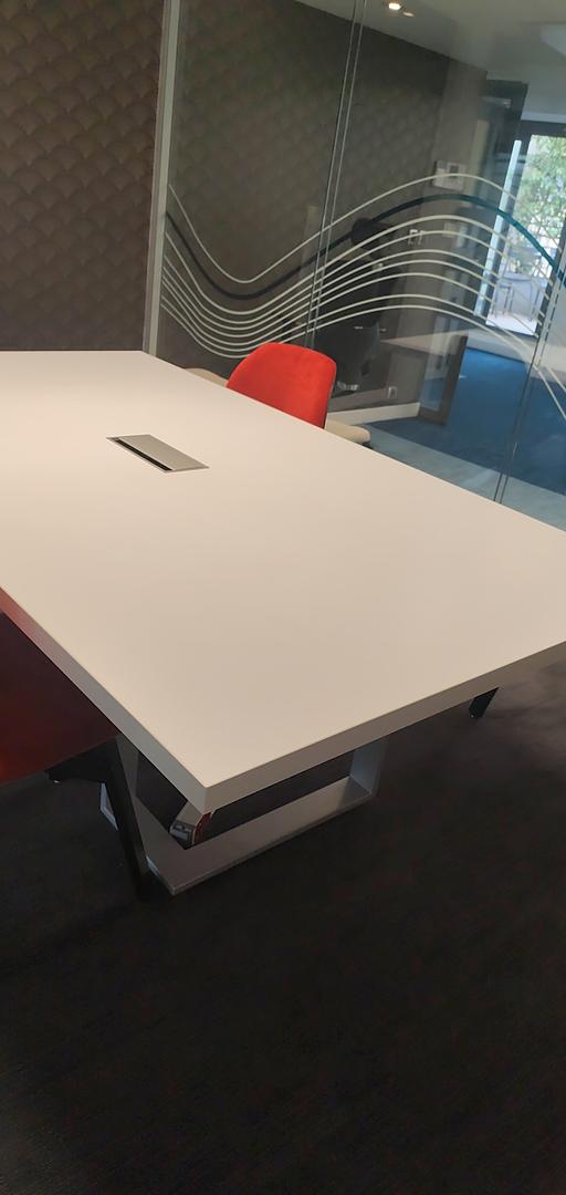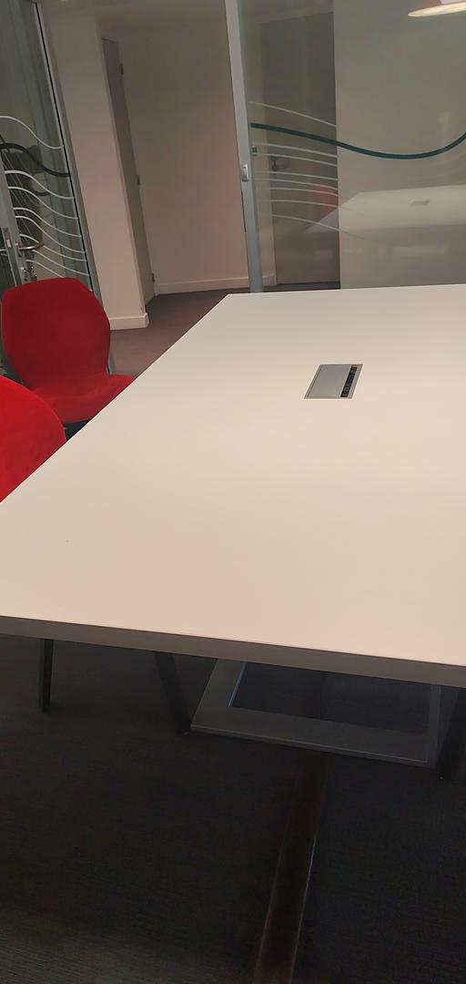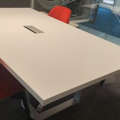 Cette table de réunion au format 120×210 cm offre un excellent confort pour les échanges en équipe. Son plateau blanc épais apporte une ligne moderne et lumineuse, tandis que le piètement acier noir en forme de U assure stabilité et espace pour les jambes. Le top-access central permet de brancher et de faire passer les câbles proprement — parfait pour vidéoconférences, laptops et présentations. Un mobilier pro, durable et facile d’entretien.
