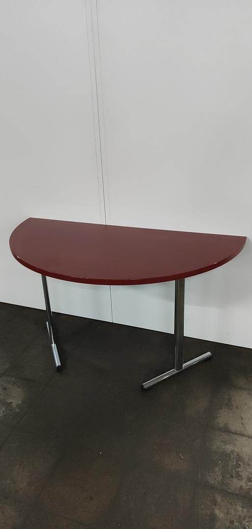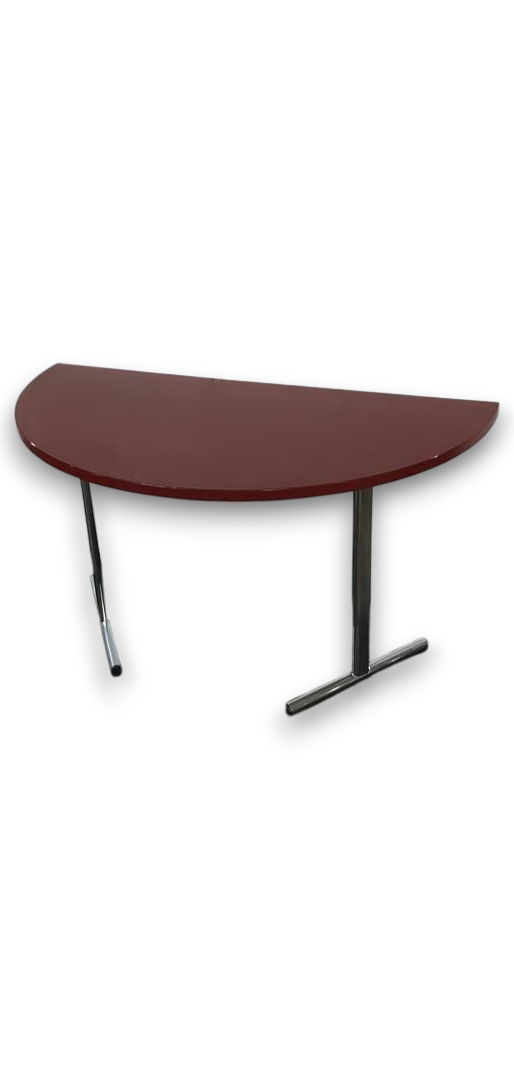 La table BRUNNER demi-cercle combine élégance et praticité. Son plateau rouge en stratifié résistant apporte une touche moderne, tandis que le piètement tubulaire chromé assure stabilité et durabilité. Le mécanisme de pliage rapide permet de libérer l’espace en un instant et de stocker plusieurs tables côte à côte.