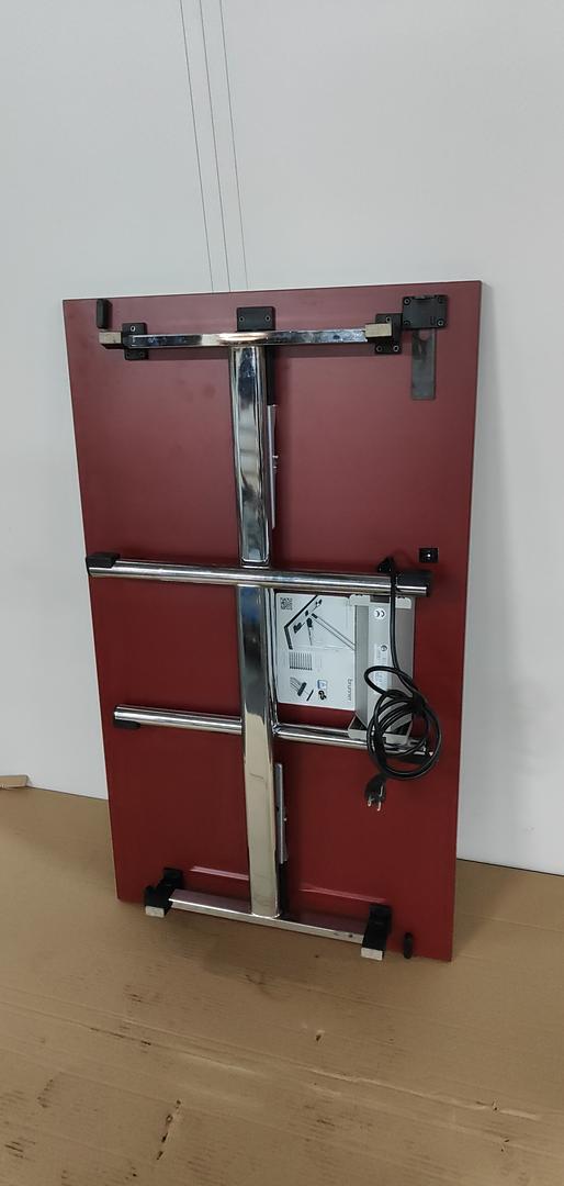 Finition plateau : stratifié/mélaminé rouge, chants soignés