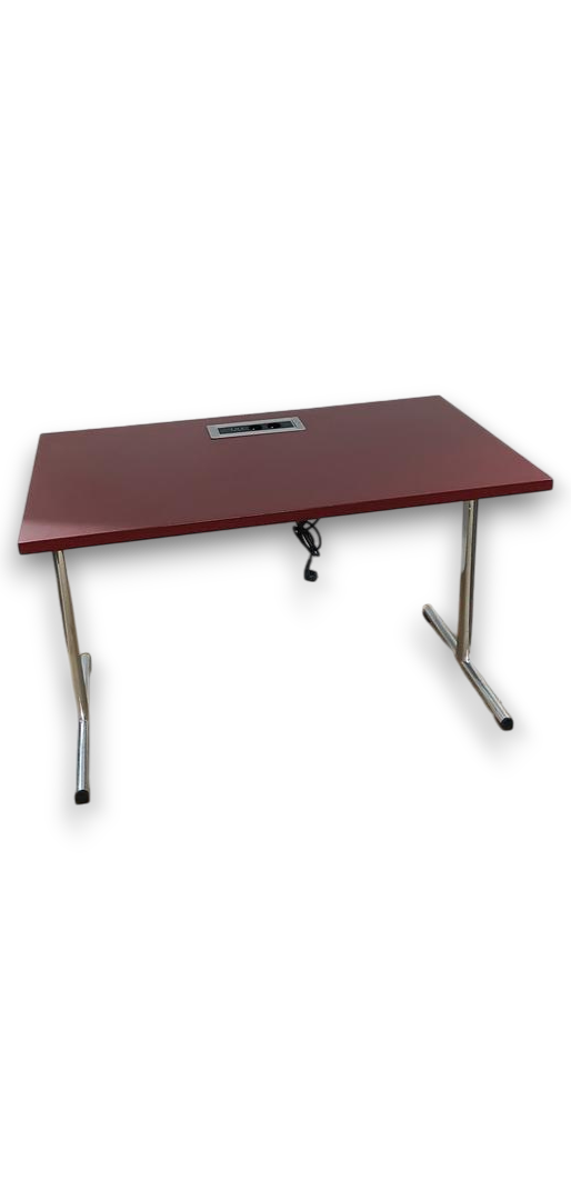Cette table de réunion BRUNNER offre le combo parfait entre élégance et praticité. Son plateau rouge en stratifié est sobre et résistant, tandis que le top access encastré permet d’alimenter et de connecter vos appareils directement au centre de la table. Le piètement tubulaire chromé se replie en un geste pour un rangement rapide et un encombrement minimal — idéal pour moduler une salle de formation, de réunion ou un espace de coworking.